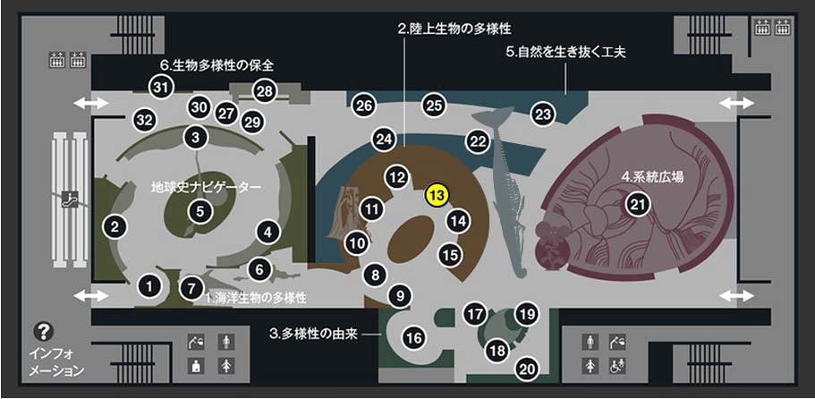 | 展示場所1(フロア) | 地球館1F 地球の多様な生き物たち |